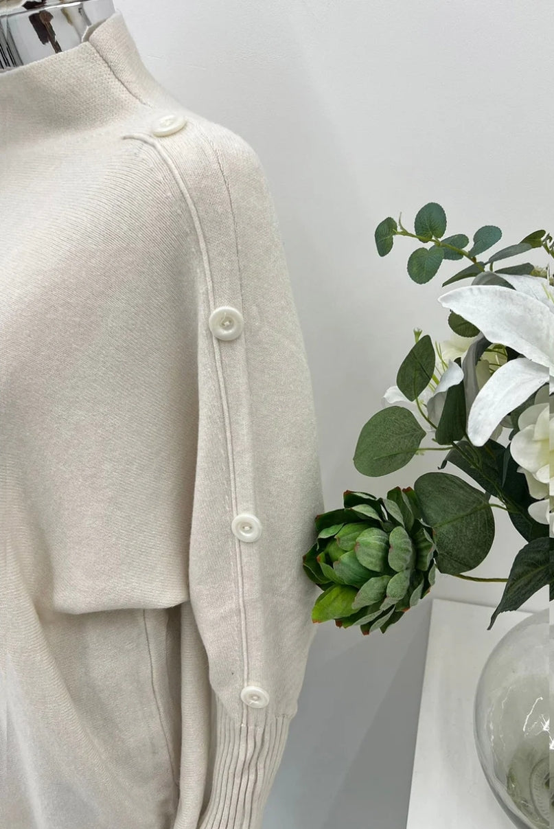 TILLIE High Neck/Button Sleeve Knit Jumper